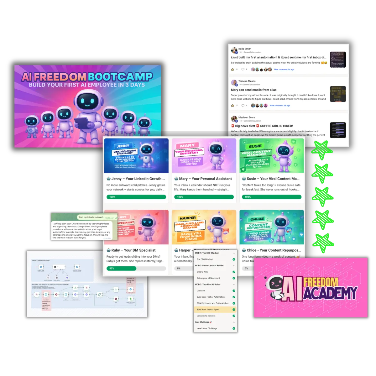 You’ll leave the Bootcamp with your first AI employee set up and working for you.